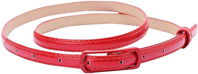 Women PU Leather Skinny Belt for Dress Adjustable Thin Waist Belt for Lady