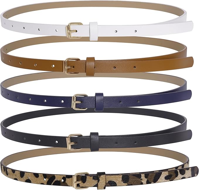 5Pc Skinny Belt Women Leather Belt for Dress Thin Waist Belt with Metal Buckle for Jeans